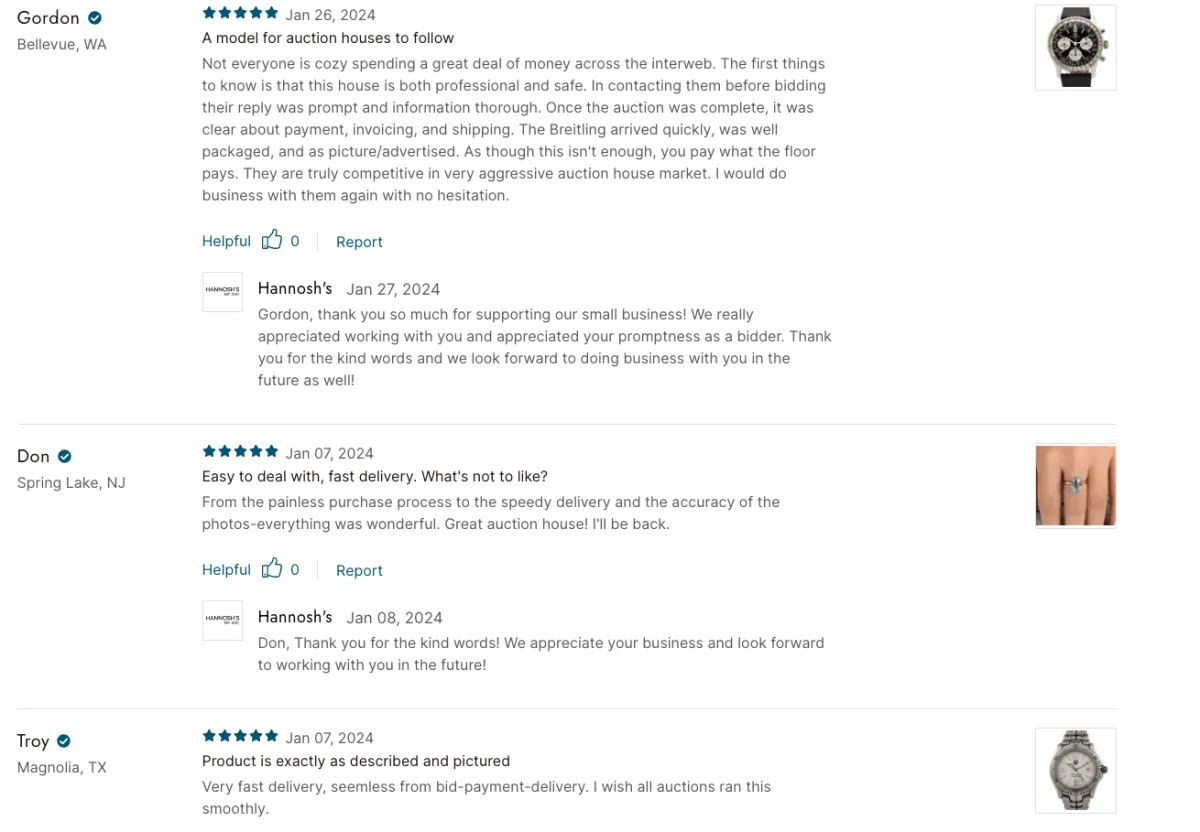 "The level of care and expertise at Hannosh's was beyond my expectations. They meticulously appraised each piece and offered a great price. Absolutely a 5-star service!"